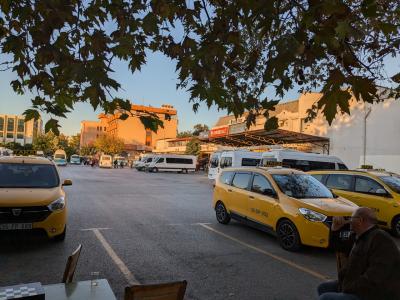 Inは市バス3Aで市内へ、クレカタッチで乗れる。Outは、早朝の7時バスだったので、タクシーで300TL(たぶん早朝の追加料金), 相場は270TLくらいらしい。
