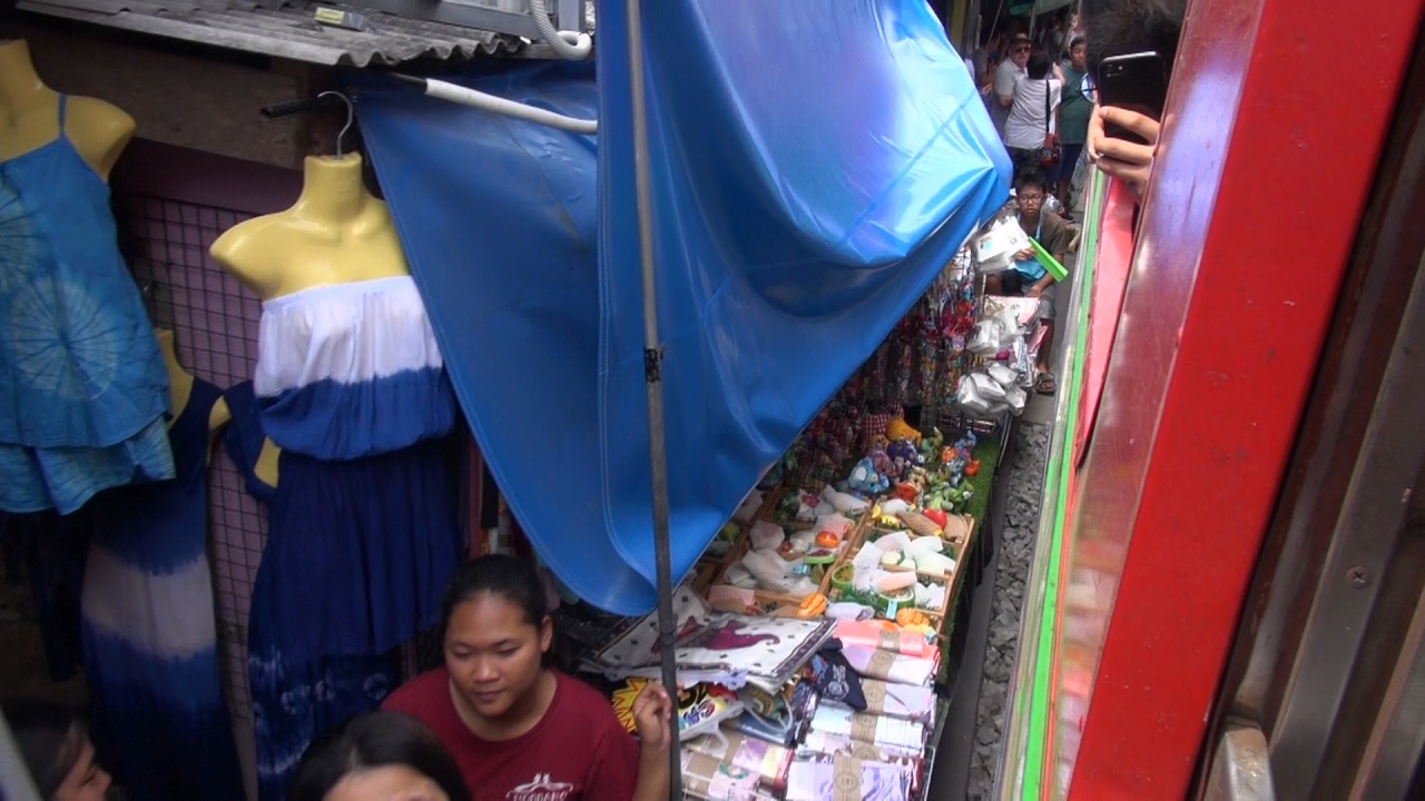 市場の中で至近距離で写真や動画を撮るのが定番ですが、一駅手前のラドヤイ駅から列車の一番後部に乗るのもオススメです。