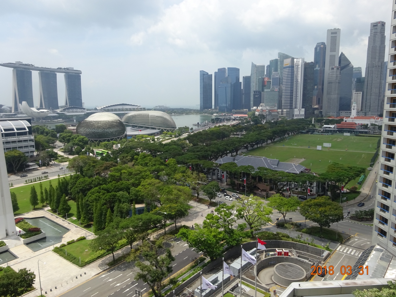 お部屋からは、マリーナベイサンズやハーバー,エスプラネード、芝生を挟んでアートハウスやナショナルギャラリー、高層ビル群などを一望できます。絶景でした。
