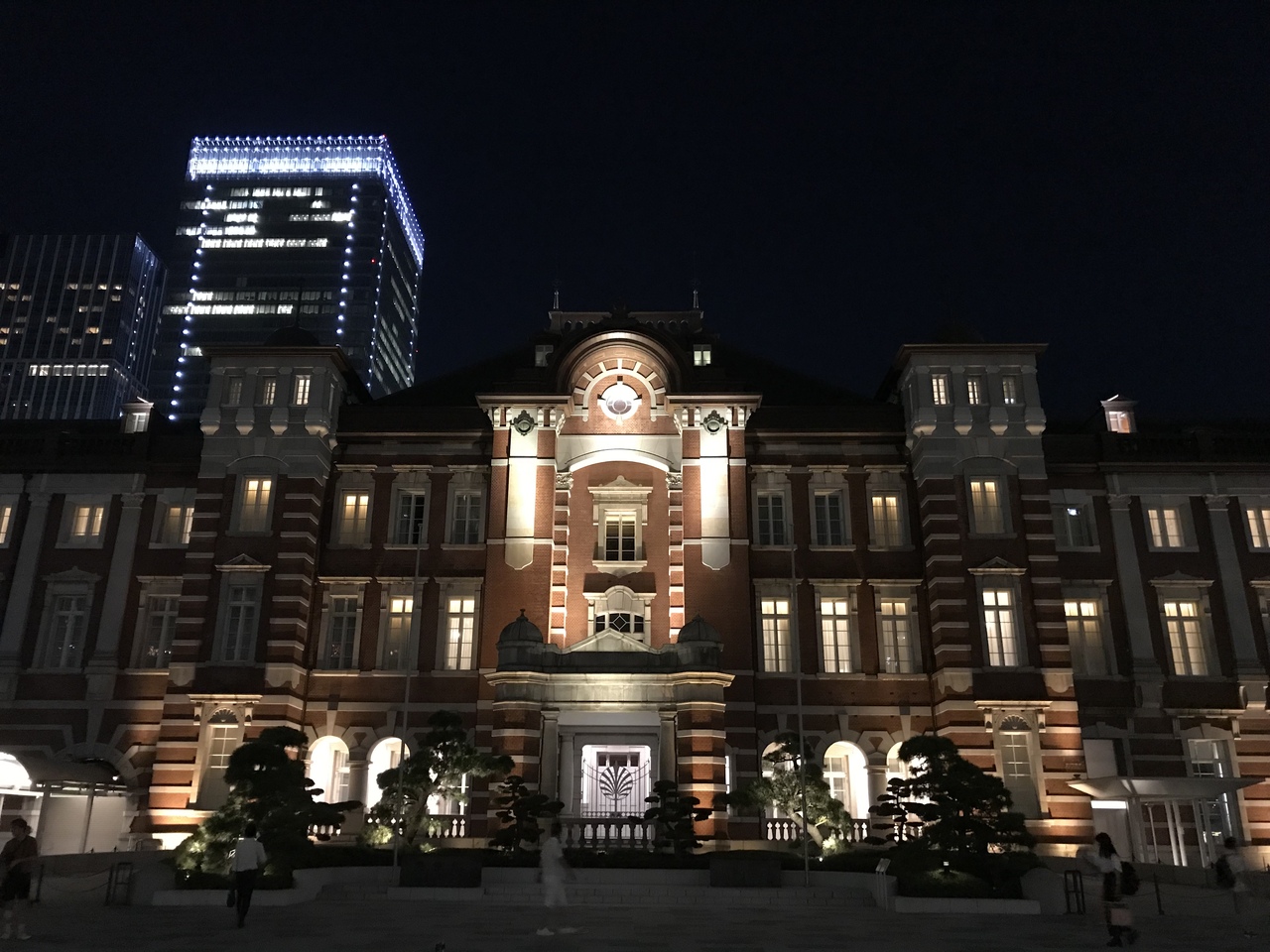 生まれも育ちも東京ですが、今まで東京駅を外からきちんと見たことがありませんでした。たまたま夜東京駅まで歩くことになったのでこの機会に東京駅の正面へ。駅前は広々としていて、東京駅はライトアップされていてとてもきれいでした。やはり趣のある作りだなーとしみじみ見つめてしまいました。
