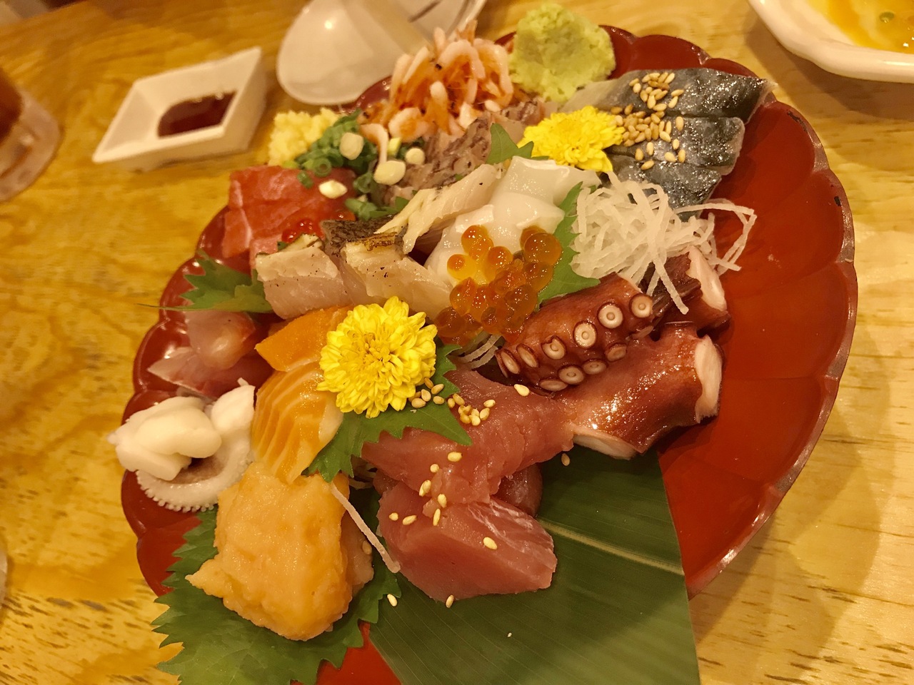 上野と御徒町の間にあるお店です。大衆居酒屋だけどタッチパネルなのが便利でした。お刺身の盛り合わせの他、あぶらぼうずのお刺身、クジラのお刺身もありました。サイコロハムカツもおいしかったです。いろんな種類のサワーもあって、カットレモンたっぷりのレモンサワーがおいしかったです。