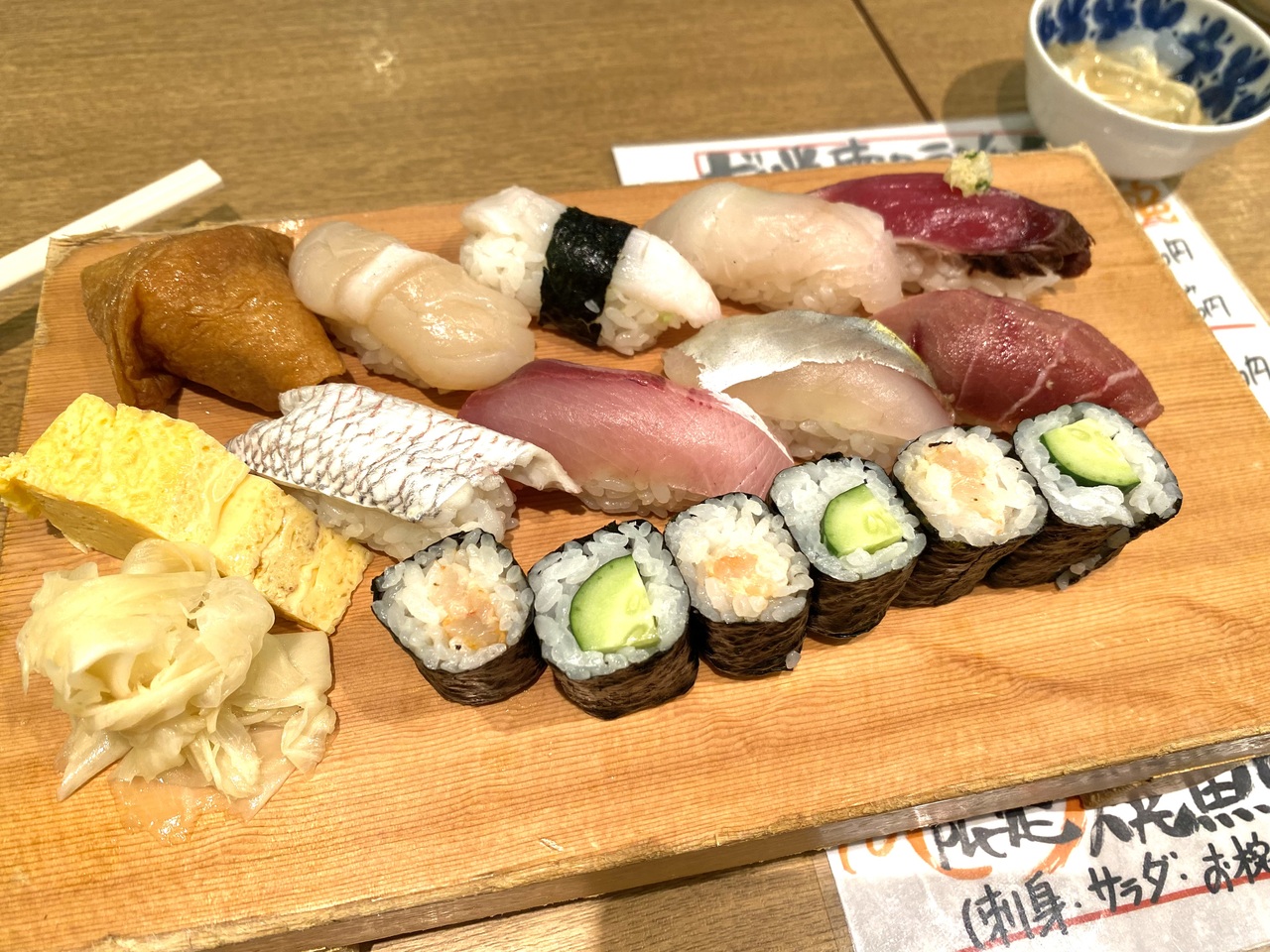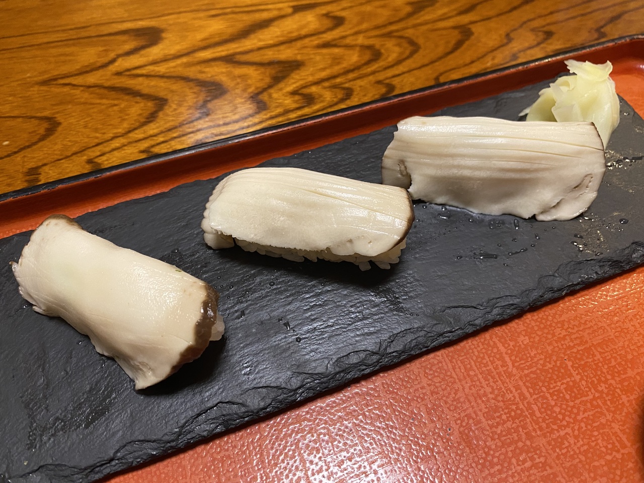 浦佐駅のすぐ前にある小玉屋。土曜のお昼の時間帯は混んでいて少し待った。天恵菇というきのこの握りと、毘沙門揚げとお蕎麦と茶碗蒸しのセットを注文。天恵菇はうまみがすごくて美味しかった。毘沙門揚げも周りはカリカリ中はとろっとしていて美味しかった。
