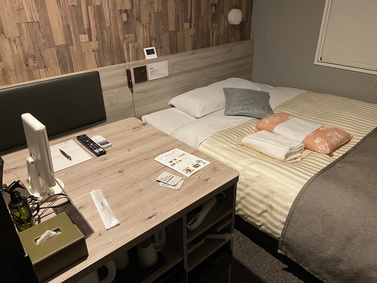 部屋おまかせでしたがレディースルームにアップグレードしてもらえました。お部屋は木のテーブルがあったりとても落ち着く感じでした。ちゃんとしたテーブルがあるので買ってきたものをそこで食べたりできて便利でした。ベッドもとても寝心地がよくて夜中に目が覚めた時、家で寝ているような錯覚を覚えてしまいました。大浴場は小さいですが天然温泉でゆっくりできました。フロントの方がとても気さくで話しやすくて親切で嬉しかったです。17時のバータイムでフロントの方から教わった大阪の焼酎を飲んでみたらおいしかったです。大阪に来たらまた泊まりたいと思いました。