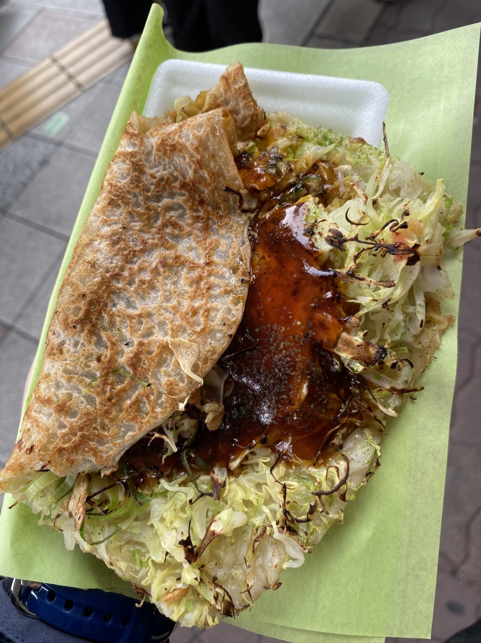 たこ焼き8個入りを買って、持ち帰って食べました。たこ焼きはとろとろでソースとのなじみがよく、たっぷりの鰹節もかかっていてとてもおいしかったです。もっと食べたくなるくらいでした。