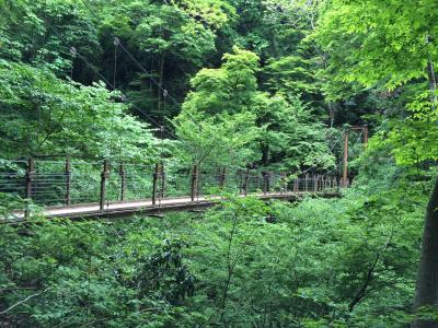 行きに稲荷山コース、帰りに4号路と1号路を使いました。稲荷山コースは山歩きらしい雰囲気を楽しめます。途中の東屋は見晴らしが良く、天気がいい時は新宿の高層ビルまで見えます。長い登りもありますが心地よい疲労感が味わえる程度でした。あまり休憩しなかったので1時間で頂上に到着しました。下山の4号路は途中に吊り橋のみやま橋があります。小さな橋で下に川があるわけではありませんがワクワクしました。その後1号路に合流し、ここからは舗装された道をひたすら下ります。結構な急斜が長く続くので足にきます。5月に入ったのですがシャガの花がとてもきれいに咲いていました。ちなみにゴールデンウィーク中は6号路は上りの一方通行になっていました。