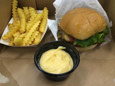 4月にアトレ恵比寿西館にオープンしました。ゴールデンウィーク中の平日に行きましたが40分ほど並びました。注文したのはシャックバーガーのダブル980円とチェダーフライのS400円。熊本震災への募金として200円でシェイクのSがもらえる施策をやっていたのでそれも追加しました。税込みだと全部で1,690円。ハンバーガーとポテトだけにしてはやはり高いです。テイクアウトを頼んだので、チーズはポテトにはかけず別の容器に入れてくれました。ダブルのバーガーは肉々しいです。でも味が濃すぎないからかさっぱりとしていてとても食べやすく、ペロッと食べてしまいました。ポテトもチェダーチーズは濃厚ですがこれも食べやすかったです。使っている油がいいのでしょうか、食べ終わって満腹なはずなのに胃の重い感じは全くありませんでした。もう少し安ければまた食べてみたいなと思いました。