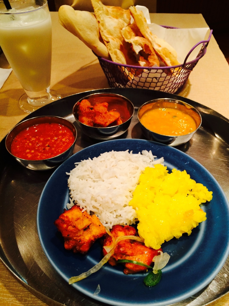 平日の12時前に行きました。続々とお客さんが入ってきてあっという間に満席。待っている人もいました。ランチは6種類のカレーから選び、サラダ、ドリンク、ナンかご飯を選んで1,000円!しかもナンは食べ放題です。ナンはふっかふかでカレーをつけるのはもちろん、そのまま食べても甘みがあっておいしかったです。カレーもたっぷりでおいしかったです。