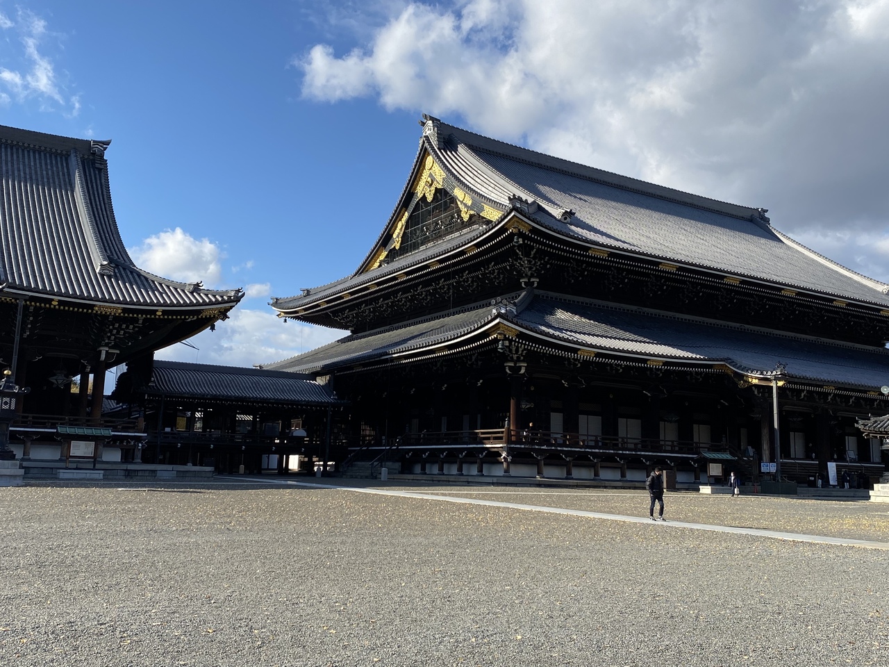 京都駅から歩いて5分ほどの場所にあります。浄土真宗のお寺なので阿弥陀如来様がいらっしゃいました。ちょうどお坊さんの法話が行われていたので畳に座って聴きました。境内のイチョウも黄葉していてきれいでした。