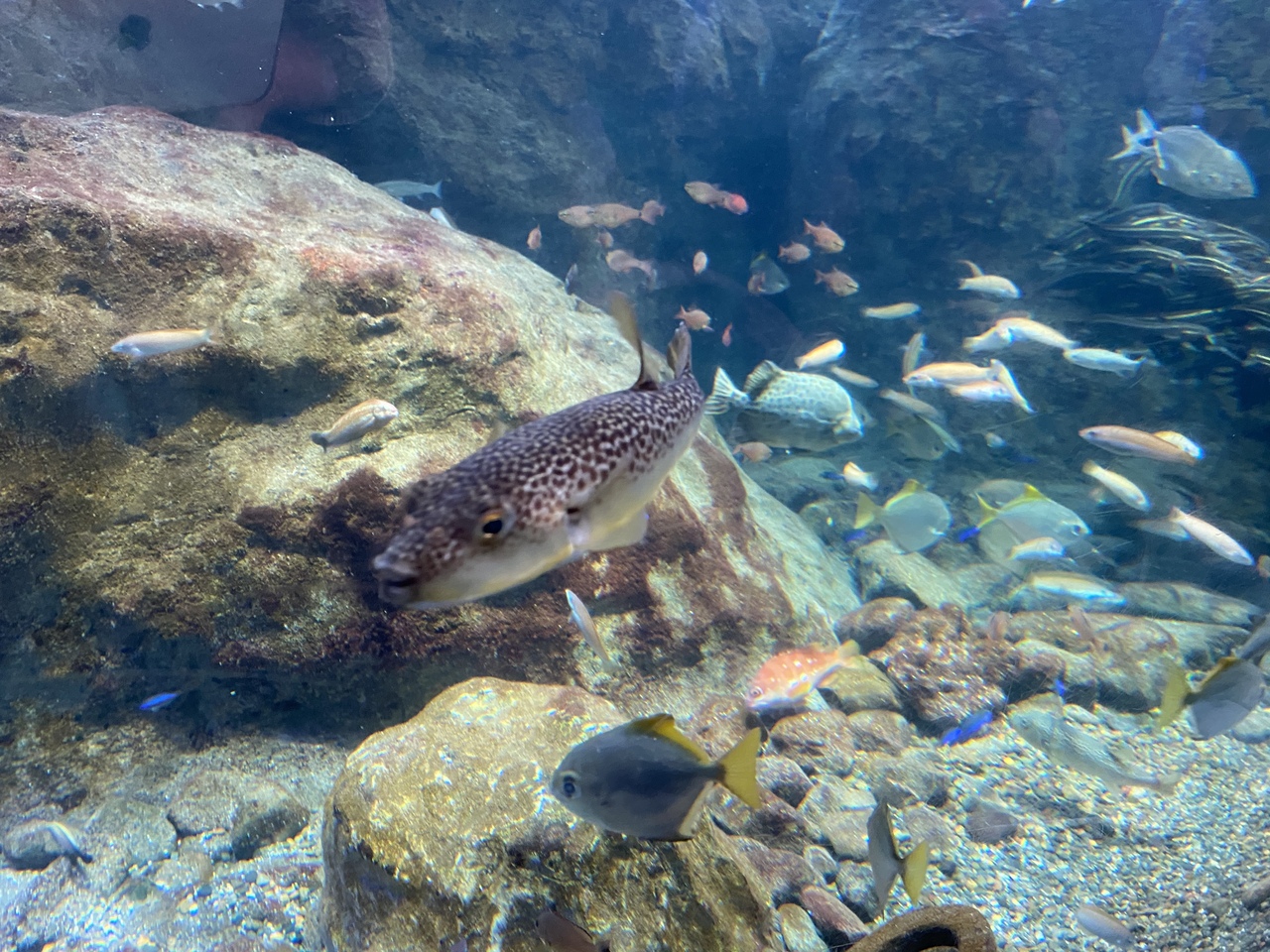 新江ノ島水族館へ。朝一番で行きましたが祝日だったからか家族連れが多くわりと混み合っていました。魚の群れが流れるようにまとまって動くのが美しく、かわいらしいエイなど癒されました。カピバラは1頭が眠くてウトウトしていたり、海亀がプール内の柵を一生懸命に乗り越えようとしている姿が健気だったり、とても癒されて楽しかったです。水族館のデッキからの海の眺めもとても気持ち良かったです。