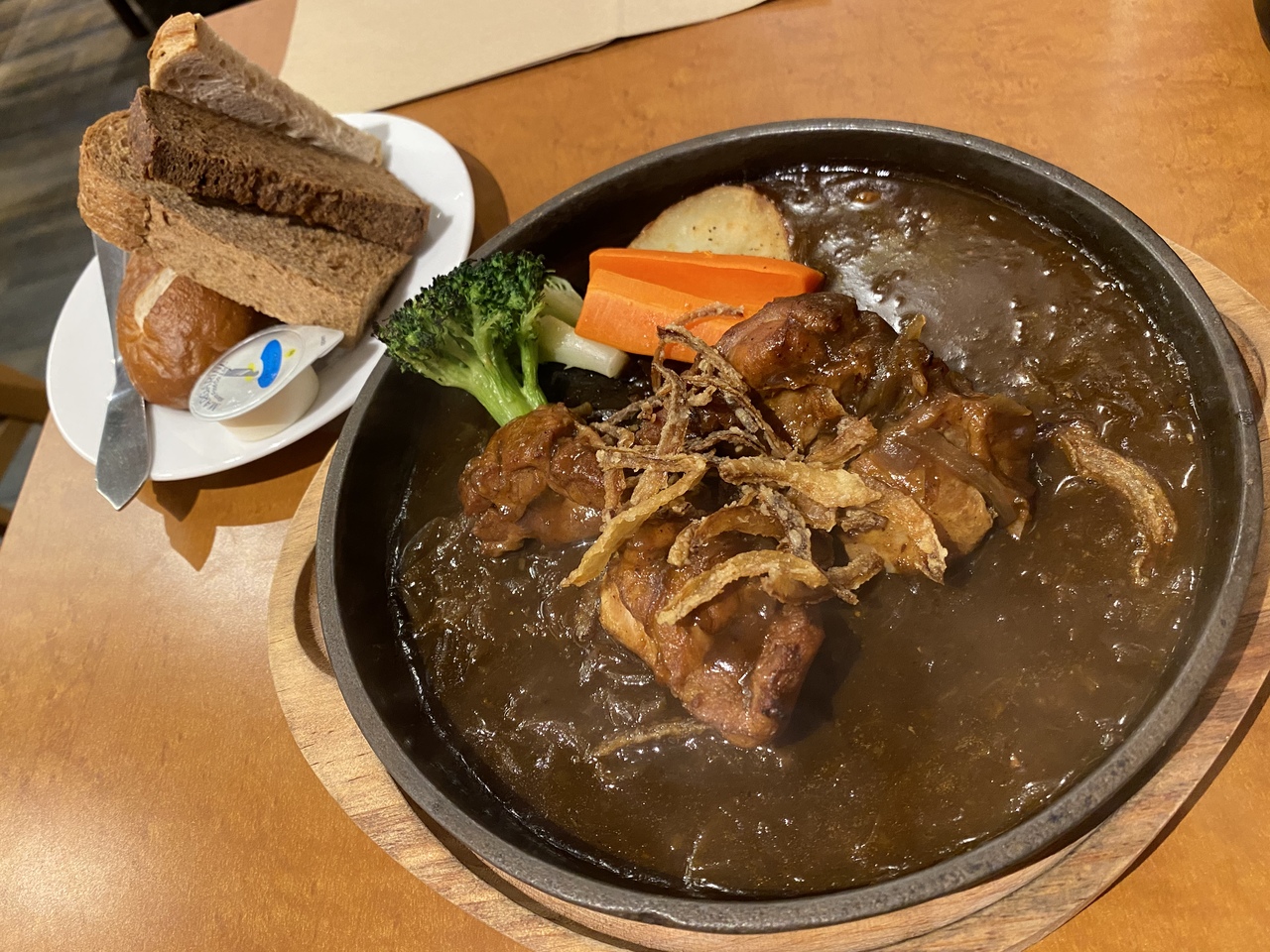 土曜日の12時前に利用しました。日比谷オクロジにあります。若鶏のビール煮込みの1,000円のランチにコーヒーをつけました。前菜のサラダとスープが出てきて、その後にメインとドイツパンの盛り合わせが出てきました。パンはあまったら持ち帰りもできるとのことで紙袋もありました。鶏が張りがあるのにとっても柔らかくてソースを絡めて食べたらおいしくて「おいしい!」と声が出そうになりました。ソースは一見味が濃そうに見えますが、しっかりと味がするのにしょっぱさは全くなくとてもおいしかったです。パンにソースをつけるとまたおいしくてパンは全て食べてしまいました。他にもドイツソーセージのランチもあったし、夜ビールを飲みにも行きたいなと思いました。