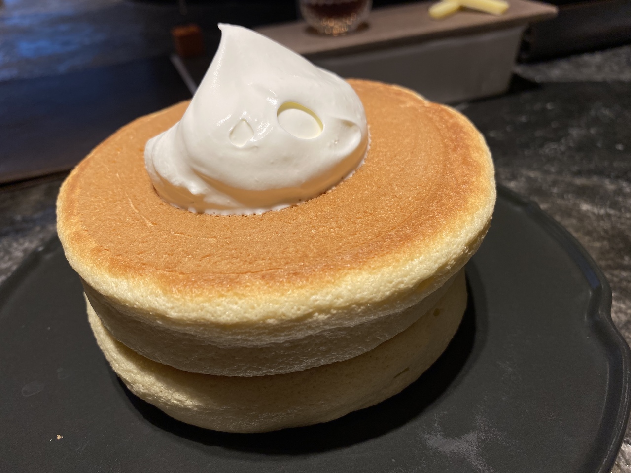 ビルの4階にあるわりと小さなお店です。土曜日の12時半過ぎ頃に行ったら6人ほど待っていました。紙に名前と人数を記入して廊下の椅子に座って待ちました。あまり待たずに呼ばれました。ホットケーキのプレミアムを注文。2枚重ねのふわふわのホットケーキの上にすぐにでも溶けて滑り落ちそうな雪のようなクリームが乗っていました。独特な形をしたナイフとフォークで切ってクリームや、付け合わせのつぶあんやバターをつけながら食べました。お昼ご飯を食べた後でわりとお腹がいっぱいだったのにペロリとたいらげてしまいました。クリームも甘すぎずとてもおいしかったです。お値段は1,700円超えますがたまにはこういうおいしいものを食べるのもいいかなと思いました。