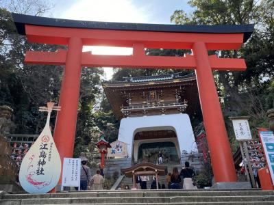 行きは湘南江の島駅から、帰りは片瀬江ノ島駅を利用しました。駅から橋をまっすぐに進むと江ノ島に着きます。橋を渡りながら右側の海の向こう側に富士山がわりと大きく見えました。トンビがたくさん飛んでいました。