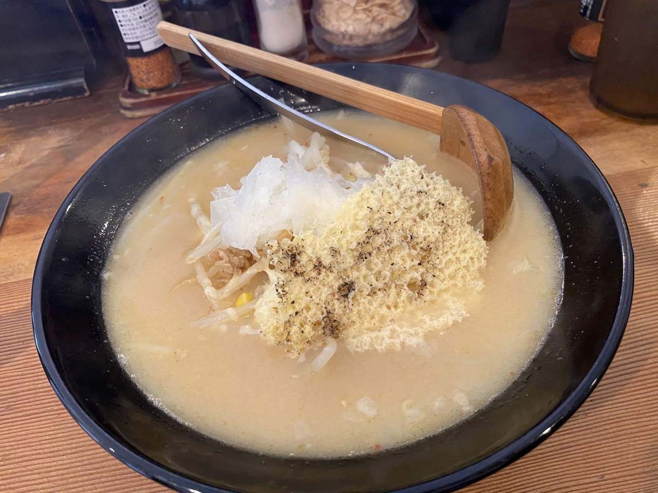 ランチにトリプルチーズ味噌ラーメンを食べました。席はカウンターで、左右についたてがありました。入口で食券を買って席に着いて食券をお店の方に渡します。思っていたよりもチーズ控えめでしたが味噌味のスープがおいしかったです。