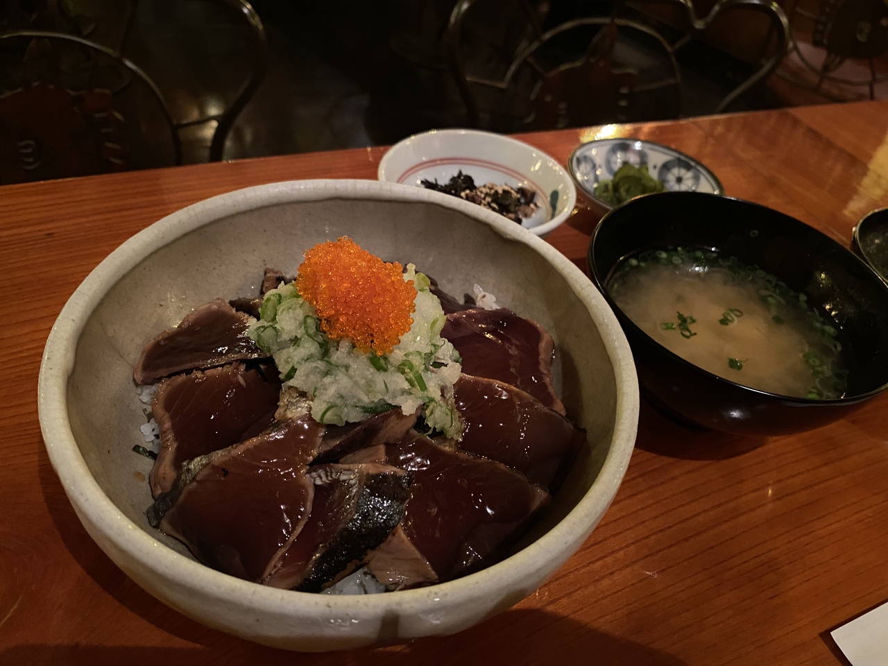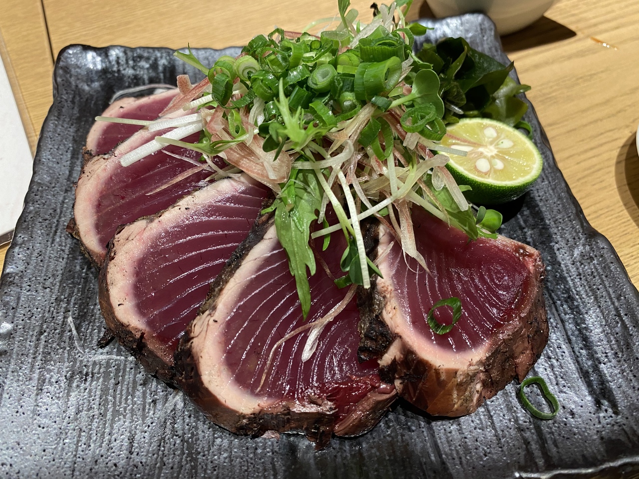 木曜日の夜に行きました。座席は少なめですがコロナの影響かまあまあ空いていました。アラカルトで注文しました。道後ビールは割としっかりした味でとてもおいしかったです。2人で1瓶を分けましたが小さめな瓶なので1人1瓶でもいいかもしれません。食事は鰹の藁焼きや太刀魚の焼いたのなどを注文しましたがどれもおいしかったです。