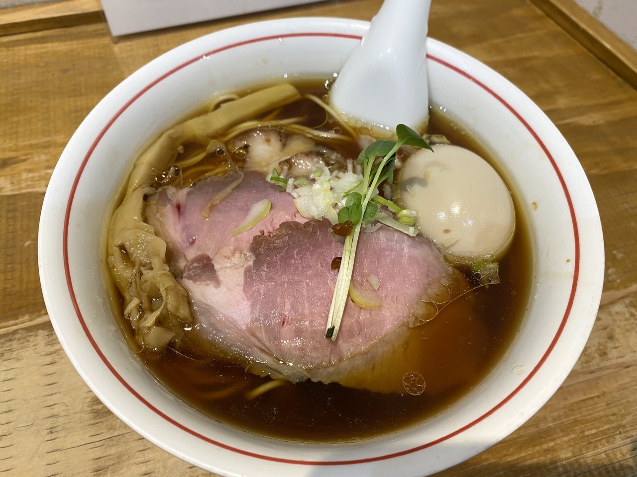 西荻窪駅南口から歩いて5分ほどの場所にあります。土曜日の13時過ぎに行きましたが10人ほど並んでいました。しかし回転が早いので10分ほど待って席に案内されました。ベンチがあるので座って待てますし、待っている間に注文を取りに来てくれます。注文したのは特製軍鶏そば。醤油ベースのスープは旨味がすごく、チャーシューも柔らかくて噛んだかどうか忘れてしまうほどでした。食べ終わった後もしばらく口の中に旨味が残っていて美味しい余韻に浸れました。とてもおいしかったです。