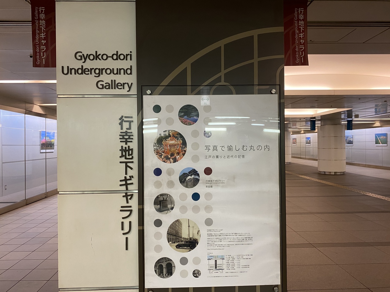 地下を通って東京駅に向かう時に通りました。世界の鉄道や街並の写真が長い地下通路の両側に飾られていました。ただ長い通路を歩くより、写真を見ながら歩けるのであっという間でした。