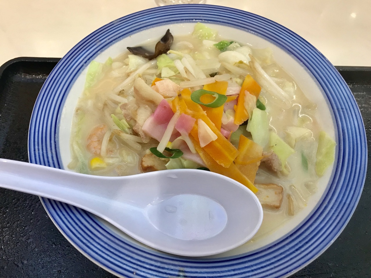 TOHOシネマズ新宿の1階にあります。先払い制なので、お店に入ってすぐのレジで注文してお金を払ってから座席に案内されます。席に着くとお店の方がお水を持ってきてくれます。座席に番号がついているので出来上がると運んできてくれます。小さいちゃんぽんを注文しました。麺が少なめで野菜がたくさん入っているので、腹八分目にはちょうどよかったです。味もしょっぱくなく野菜の甘みと旨味があっておいしかったです。土曜日の13時半頃に行ったら混んでいてレジも並んでいましたが、回転が早いのですぐに入れました。