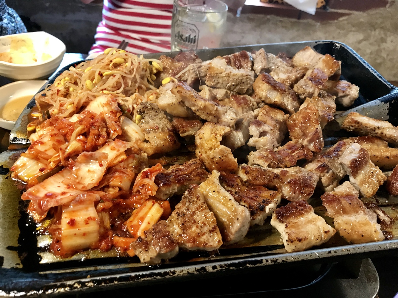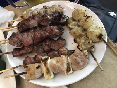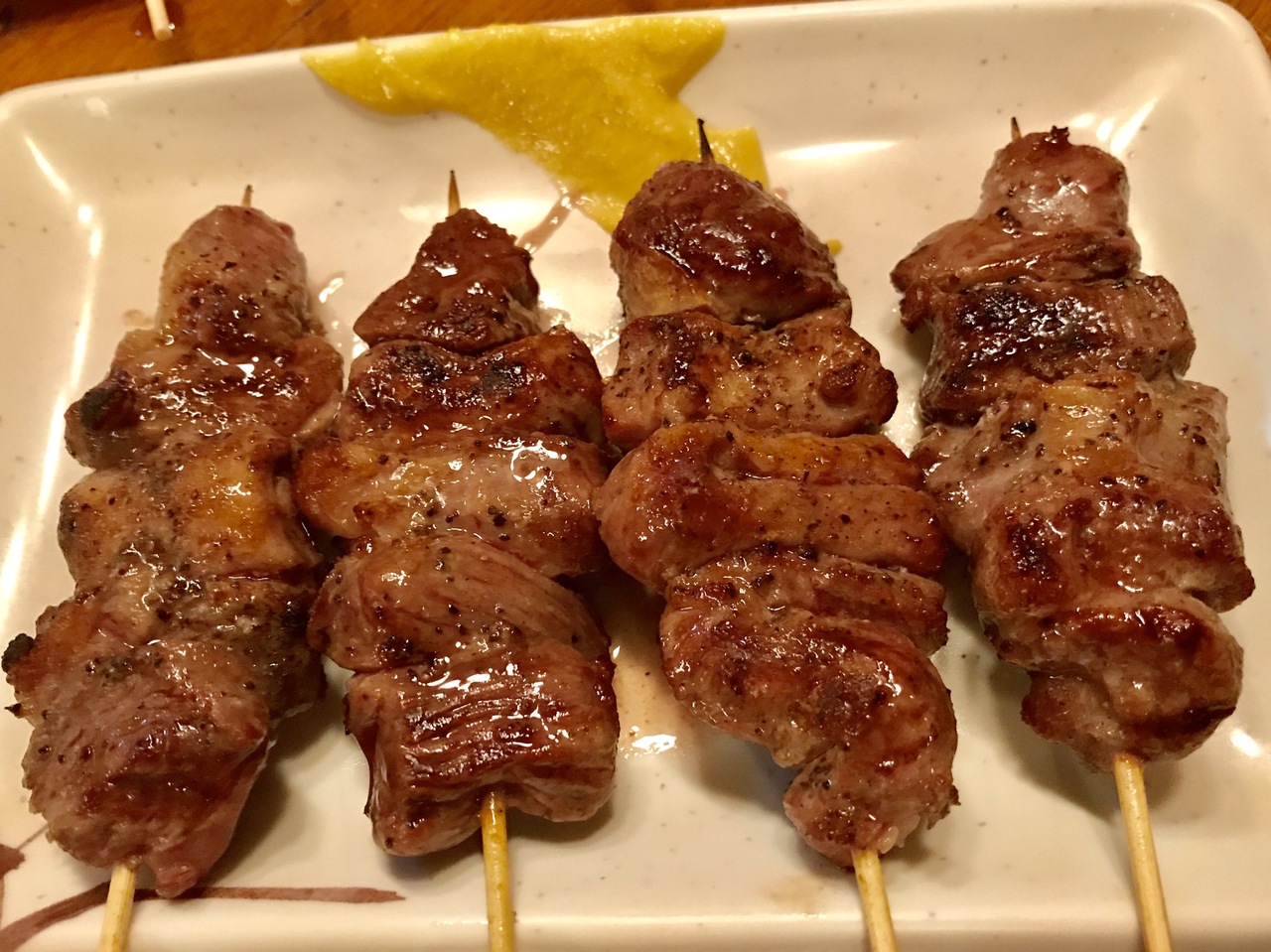 2軒目に行きました。大きめのテーブル席に案内されました。飲み物は角ハイボールやホッピー、食べ物はサラダ、ねぎま、ハラミ、しいたけ、ガツ刺し、漬物、ししゃも、エイヒレなどを注文。串は絶妙な焼き具合でとてもおいしかったです。トイレがドアを開けて左側が男性用が、右側に女性用の個室があります。ドアを開けると男性用が見えてしまうのでちょっとびっくりしました(笑)とてもいい雰囲気でおいしく安く飲めるお店でした。