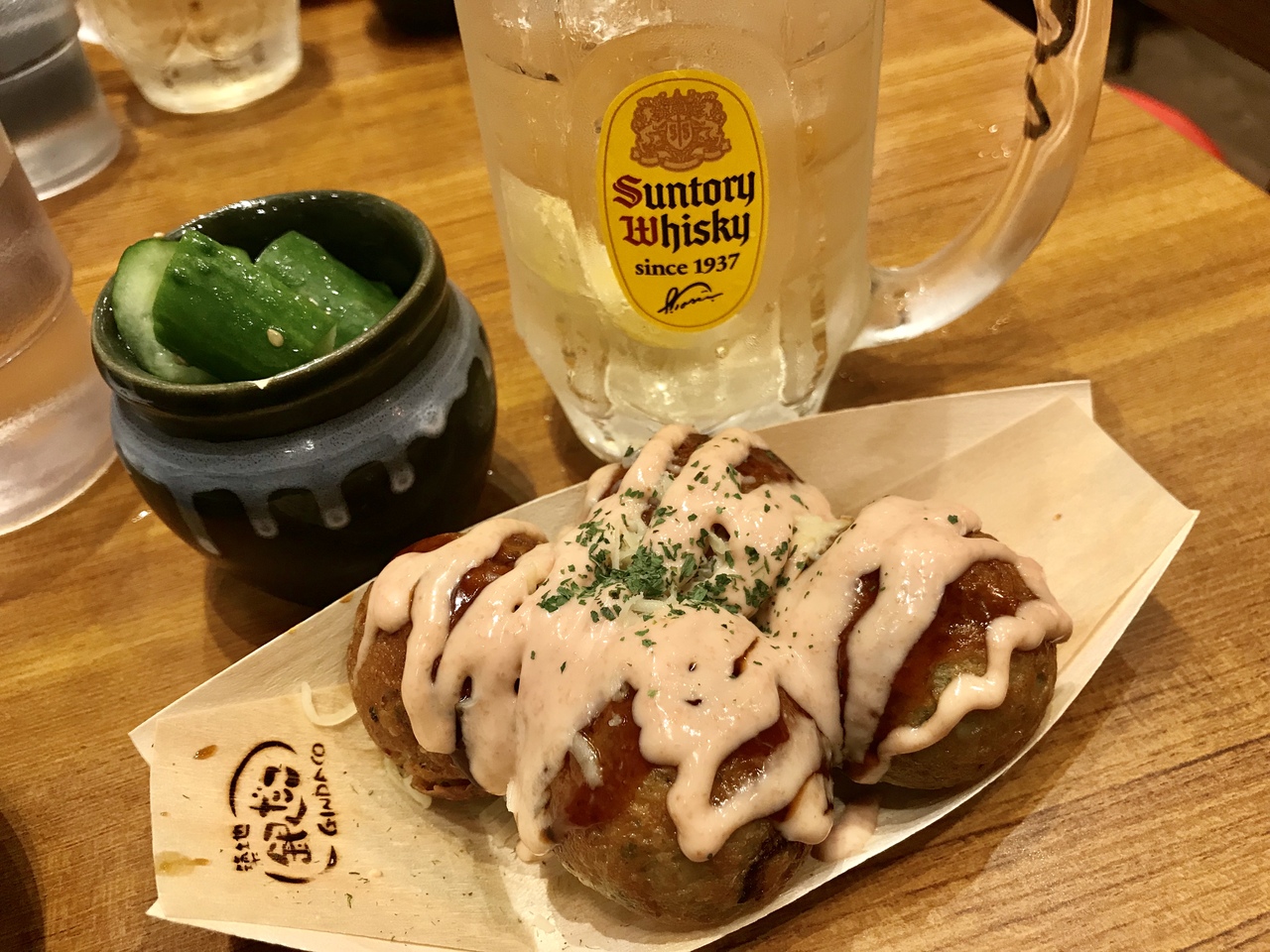 阿佐ヶ谷のパールセンターの中にあります。ハイボールと壺きゅうりとたこ焼き4つがセットで980円だったのでそれを注文しました。ちなみに平日のハッピーアワーの時間はセットよら単品で頼んだ方が安いとメニューに書いてありました。たこ焼きは種類が選べたので明太子チーズを。熱々でおいしかったです。そのほかにもハムカツなどおつまみがいろいろあるみたいなので飲みにも使えますし、たこ焼きを楽しむためにお子さんを連れた家族の方も来ていました。