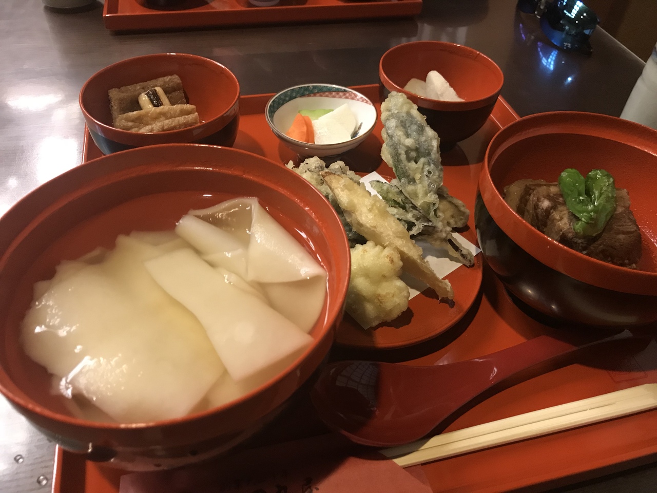 西沢渓谷ハイキングの行動食にしようとよもぎ餅を買いました。バス停のすぐ横にお店があり、店頭で五目お弁当と一緒に売られています。1つ160円です。ちょっと薄いですがよもぎの味がしっかりしておいしかったです。