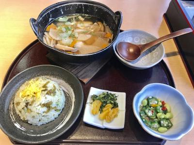 熊本空港に13時半過ぎに到着したので、空港で何か熊本グルメを食べたいと思って行ったのがこの空港の3階にあるレストラン。だご汁定食1380円を注文。にんじん、だいこん、里芋、ごぼう、しいたけのお汁の中にすいとんみたいなものが入っていました。そして高菜ご飯と小鉢と漬け物がついていました。だご汁は優しいお味でホッとしました。高菜ご飯も食べられたしよかったです。他に馬刺しの定食やお蕎麦や辛子蓮根もありました。お酒もあるので一杯飲むこともできます。