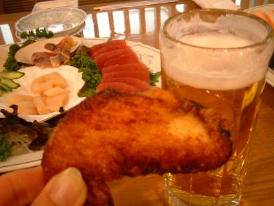 食事後「さっき獲れたんだよ」と、まだ活きてる甘エビを