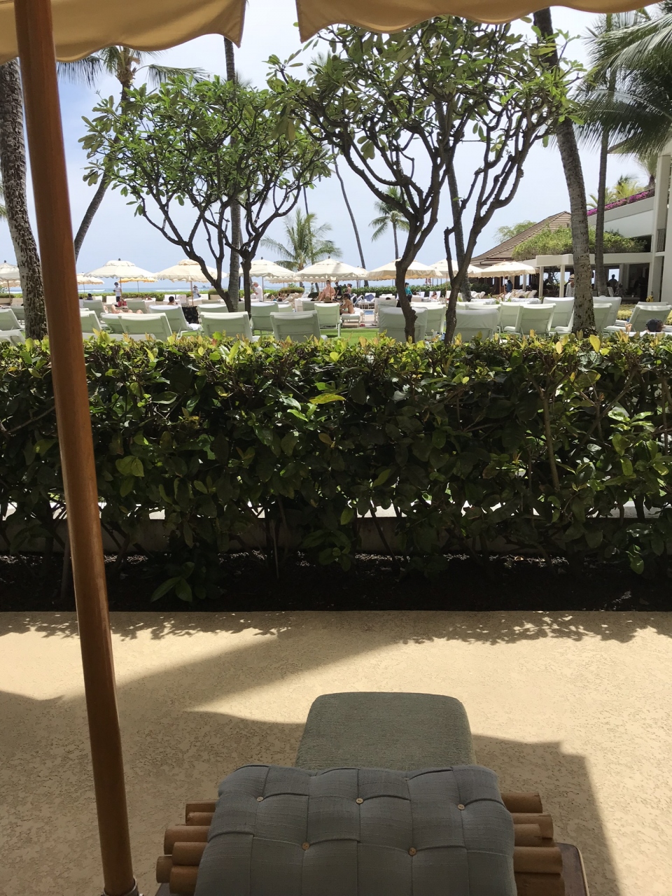 ビーチにいちばん近い席が空いたので変更したいといっても、聞いてもらえず。