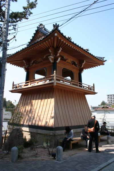温泉寺は同じ兵庫県では城崎温泉、その他にも日光、下呂温泉、河口湖など各地の温泉に建立されています。この有馬温泉にも温泉寺があります。お店などが居並らぶ道から階段・坂を上ったところにある、まだ新しい釣鐘堂が印象的な温泉寺です、