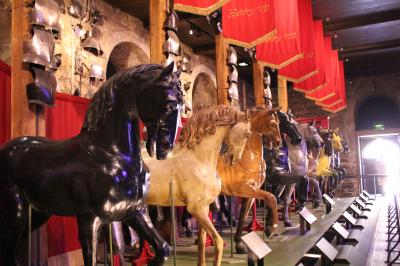 地下階に、その階段を上らずに『ゴールデン・ギャラリー(黄金回廊)』からの景色をバーチャル体験出来るスポットもありました。