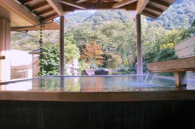 お宿自慢の温泉も大変良かったです。朝と晩とで男女湯が替わるので、どちらの温泉も楽しめます。双方の温泉にも、山々を望む庭園の中の露天風呂がついていて、自然の景色の中でゆったりと入る温泉には「思わず気持ちいい…」とつぶやいてしまいました。