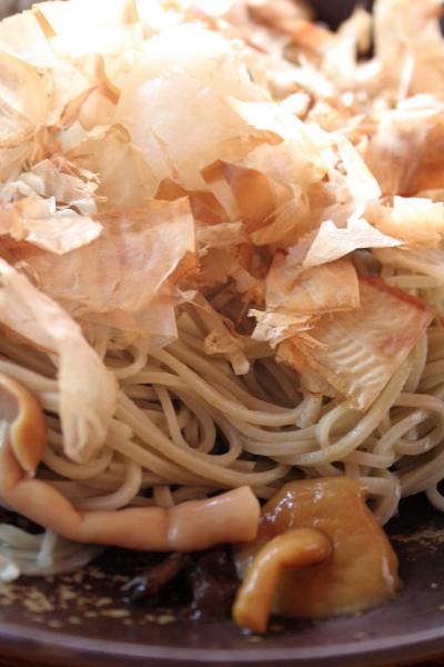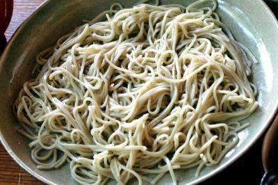 カラリと揚がった天婦羅そばに、鴨の旨味がたっぷり入った出汁をつけながら頂く鴨そば(1300円)と、ぴりりと辛い大根おろしがのったなめこおろしそば(1300円)がおススメです。