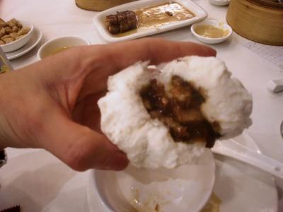 大哥叉焼(特製バーベキューポーク)の他に、叉焼とはまた違った美味しさのホカホカの皮の叉焼飽、大きなプリプリ蝦がごろごろと入った絶品♪の露筍蝦ギョウザに、蟹子焼賣、牛肉球、薄い皮がパリッとして中がしっとりとした春巻きも頼みました。化学調味料を使用していないと言うお料理は、どれも、みな、ハズレなし!