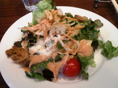 前菜感覚のボリュームたっぷりサラダ 飲みもの が付きます。