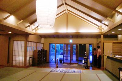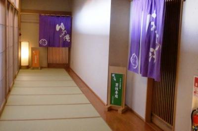 お宿の全廊下は、和紙を使った畳敷きでした。最初はスリッパの無いのに戸惑いましたが、慣れると足触りがさらさらしていてとても気持ちがよかったです。その上、全館ほぼバリアフリーで、車椅子を押しての移動も楽チンでした。