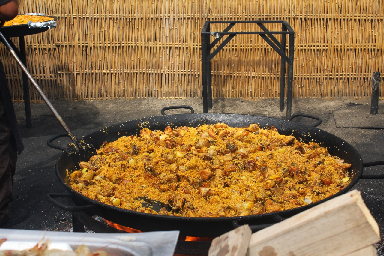 コスタ・デル・ソルのビーチ横で、大きなパエリア鍋で薪を使って焚かれたパエリアは格別♪
