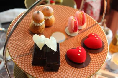 マンダリンオリエンタルホテル38F。お天気がよければ東京の街を眺めながらのアフタヌーンティーを楽しめます。但し、窓ぎわのテーブルは2時間の時間制限があり、ゆっくりと会話を楽しみながらのアフタヌーンティーには、時間制限のないテーブルがオススメです。