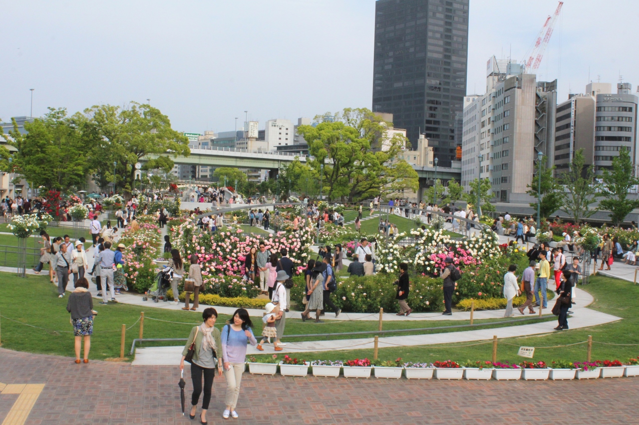 2009年にリニューアルされた中之島公園のバラ園です。「バラの庭」「バラの小みち」「バラの広場」の3つのエリアがあります。