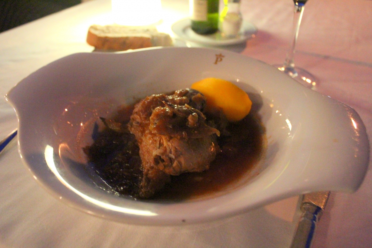 コースメニューは約30ユーロ。前菜にガスパッチョ、そしてメインはトレドの名物料理のペルディス(野うずら)の赤ワイン煮込みをいただきました。