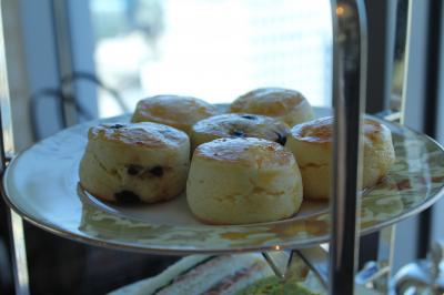 伝統的な3段プレートでサービスされ、スコーンも、サンドイッチもスイーツも美味しい。