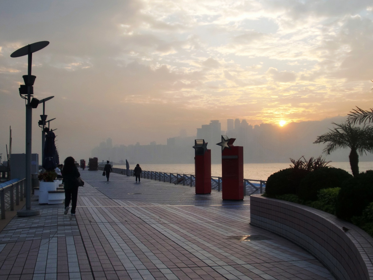 静かな朝靄の中を、ジョギングする人あり、同じく散歩する人あり…。夜や昼間の観光客(私も観光客ですが…笑)で賑わう「アベニュー・オブ・スターズ (星光大道)」とは又違った顔を見せてくれます。