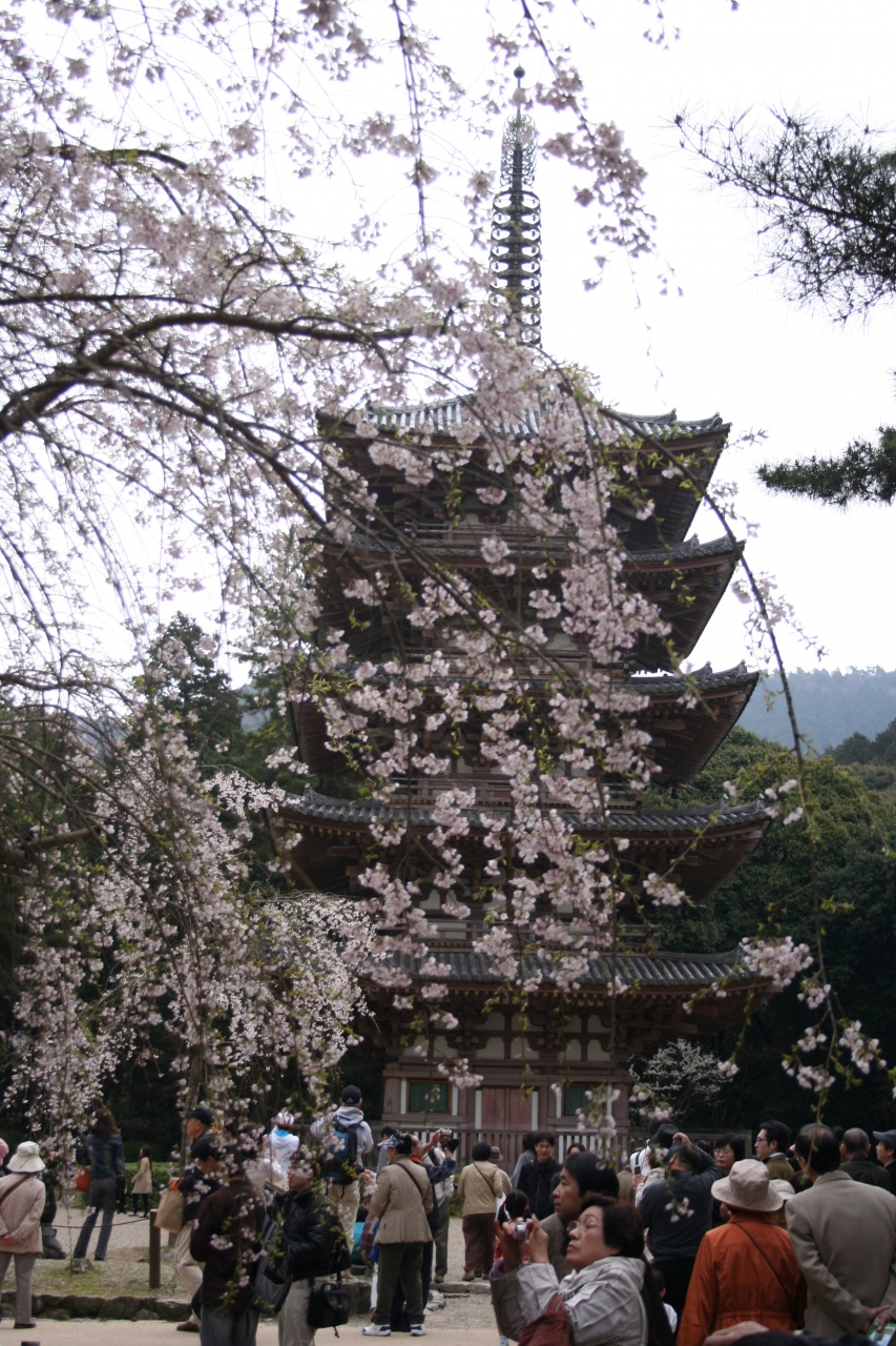 霊宝館のしだれ桜、三宝院のしだれ桜、金堂の横手のしだれ桜、清滝宮の前にある大きな桜、五重の塔の周りのしだれ桜など、見事な桜には事欠きません。