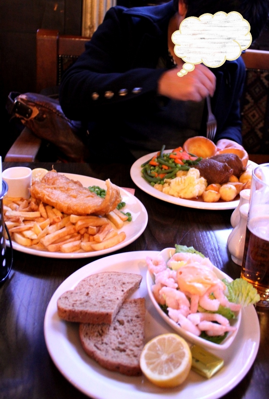 お食事も特大のフィッシュ&チップスを初めとした伝統的な英国料理がほとんど。