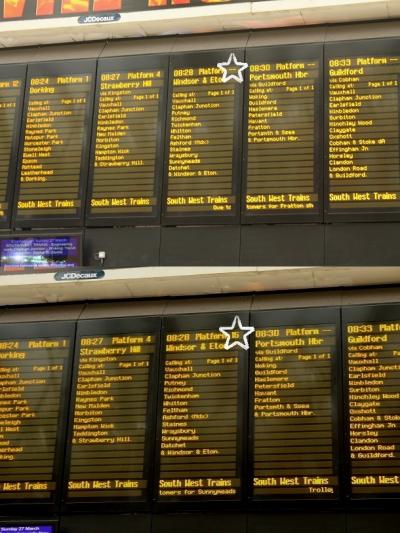 ◎ウォータールー駅から出る電車→「ウインザー&イートン・リバーサイド駅」(ウインザー城へ徒歩約5分)に到着【約50分・乗り換えなし】