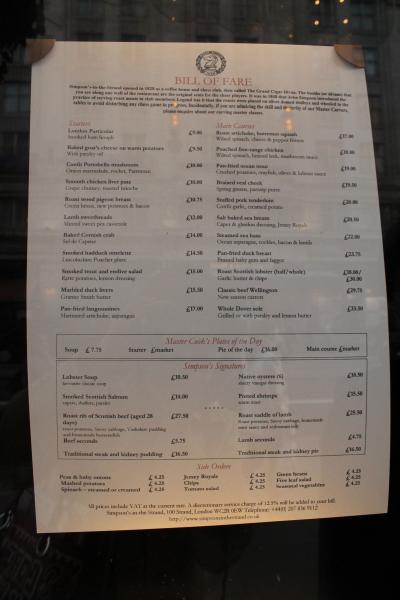 創業1828年の伝統的な英国料理、特にローストビーフが有名なお店です。