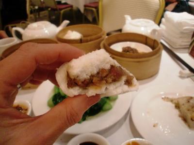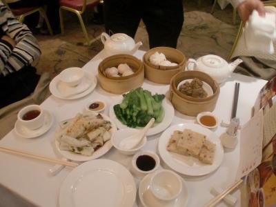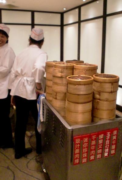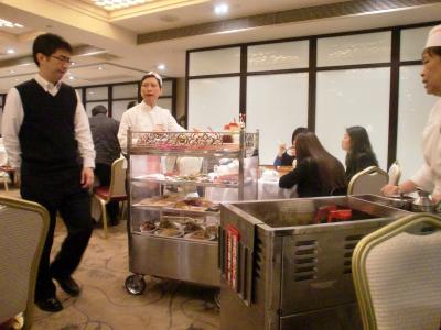 店内の各テーブルを点心やデザートをのせたワゴンがまわり、中央のカウンター?でもおばちゃん達がお皿に選んだ点心をど~んと盛り、賑わう店内は中国語が飛び交う…。