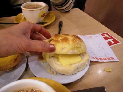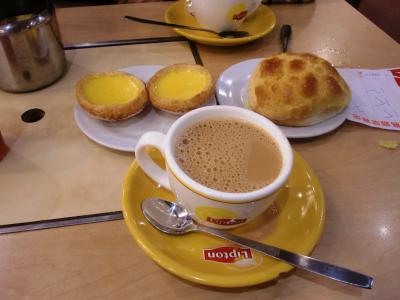 壇島コーヒーとエッグタルトとパイナップルパンを注文しました。有名な『エッグタルト』は、サクサクのパイ生地にちょっと甘めの卵たっぷり入ったプリンがのっているって感じ…でしょうか。なかなか美味しかったですが、それよりも美味しく思えたのが、メロンパンではなく『パイナップルパン』。中にバターを挟んで食べます。これが見た目よりはるかに、美味しい!のです。- 旅行時期