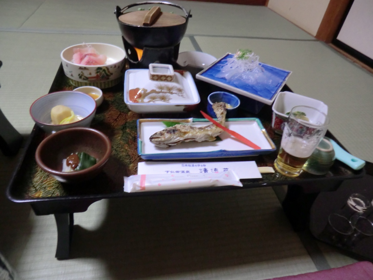 泊まった部屋は、本館2階の洗面所、トイレつきの部屋。帳場から階段で上がるといったん扉から廊下へ、壁がないので、評判通り冬は寒いでしょう。でも部屋は15時前だったのですが温めていてくれたのでほっこりしました。