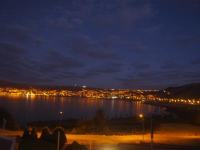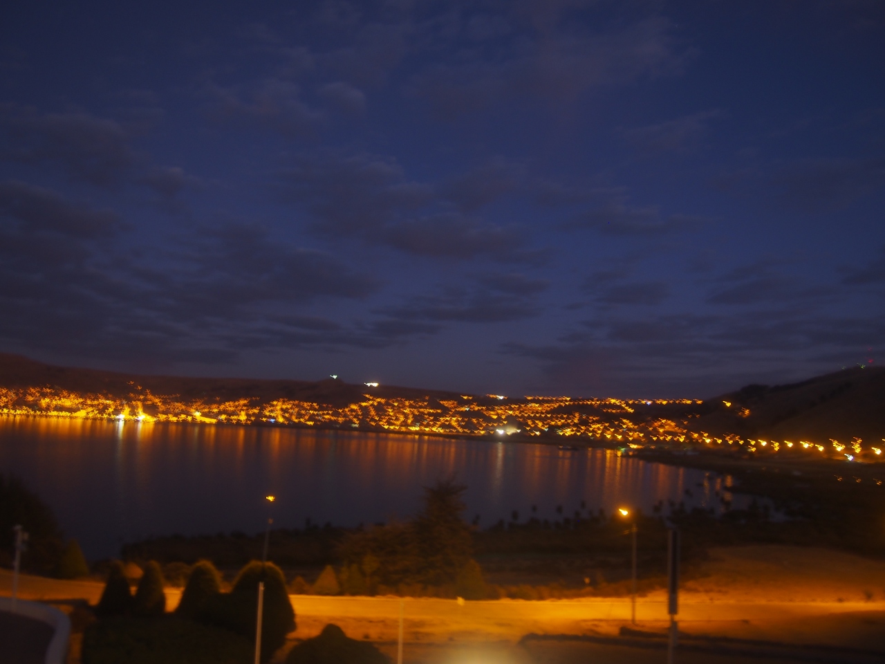 ペルー唯一のリゾートホテルということでした。プーノの町からは離れており、チチカカ湖へ飛び出した半島(橋で渡ったから島なのかな?)にあり、湖側とプーノの町側に部屋があります。湖側は朝日が最高で、それは朝のレストランでも見ることができ、私たちは町側だったので、プーノの町の夜景がとても素敵でした。