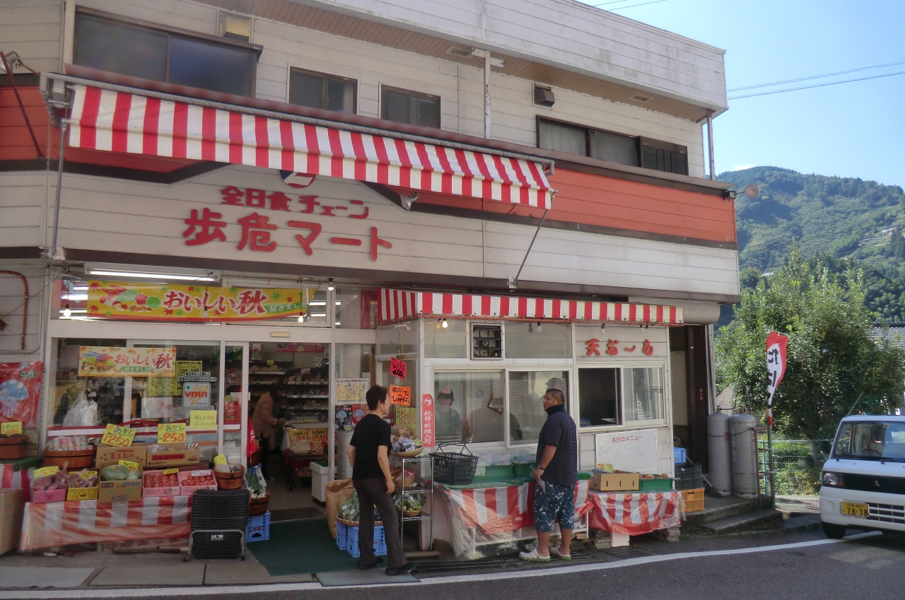 ホントにあるの?と不安だらけで車を走らせたら、大歩危駅の前に道路を隔てて2軒、ありました「歩危マート」。