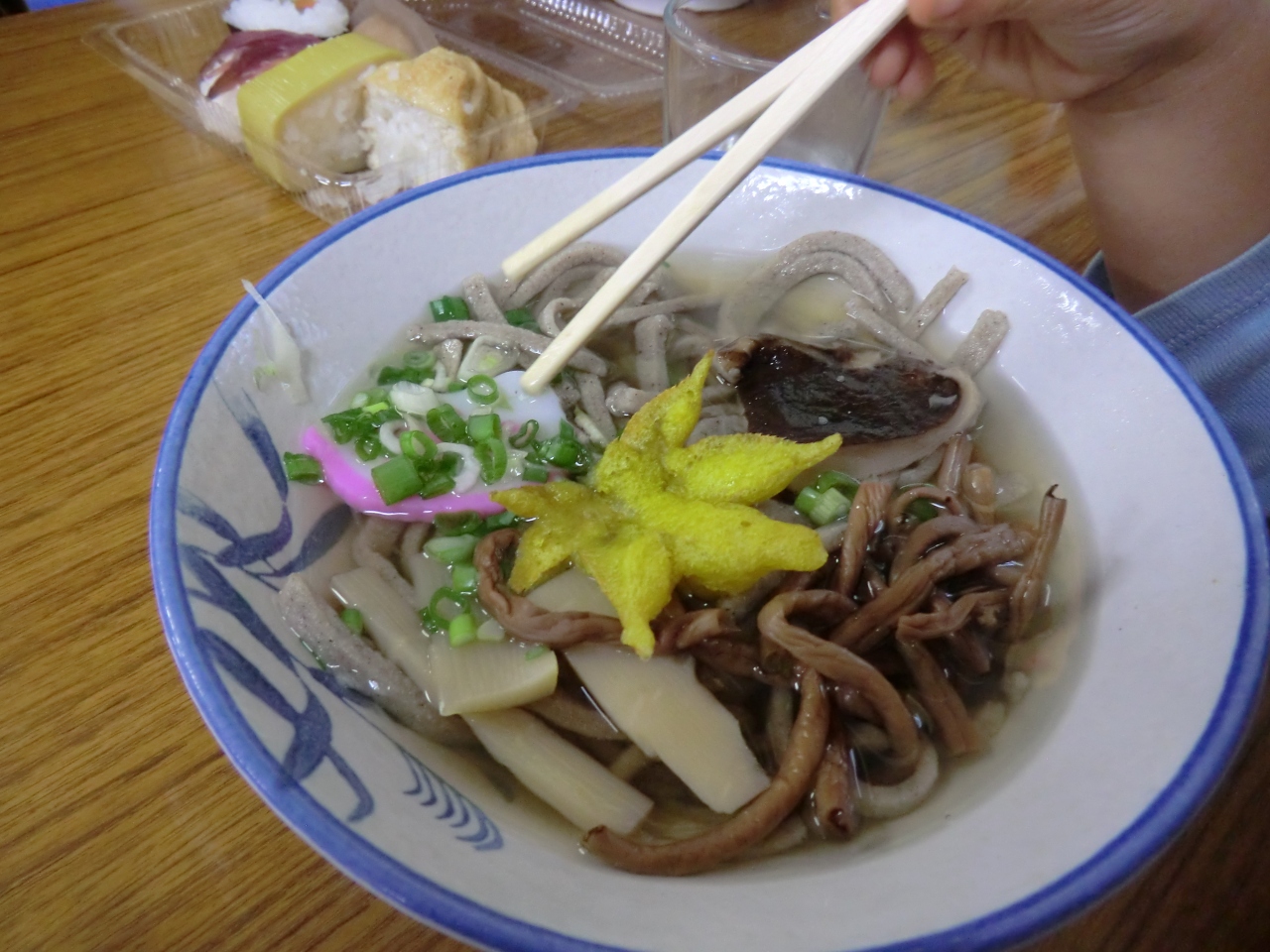 おなかがすいたので、なにげにはいって「もみじそば」をたべました。太くてぶつぶつでいかにも手作り!でしたが、そばの香りがして汁も出汁が効いていてとてもおいしかったです。蕎麦饅頭もいけます。